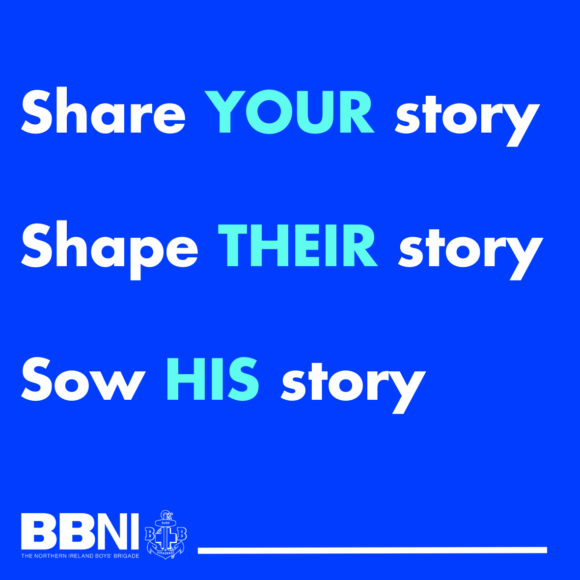 We have the great privilege of speaking into young lives and helping to shape their story. We are united in our desire that our children and young people will hear the gospel and will one day welcome Jesus as their personal saviour. Together we ’sow His story’. In an ever-changing culture, we must take every opportunity to sow His story into the lives of children and young people as together we serve out the object of Boys’ Brigade in Northern Ireland. As we do, we continue to seek God’s wisdom, guidance and His blessing as we advance His kingdom in our community.